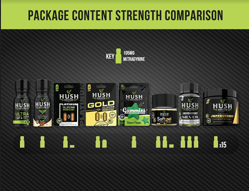 Hush Kratom Ultra Shot Blended Kratom Extract with Coffee Infused Flavoring. Typical user experiences initial onset within 5-10 munites. A Potent Shot of Kratom 80% Pure Alkaloids Highes